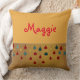 Gorgeous gold for "Maggie"Small dog an elegant teardrop design in Gold green aqua lemon and red.Text in Light red reads "Maggie" Customise text to your own dogs name. This lovely pillow design can also be for your human best friend! Customise to change the name!