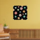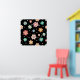 A bright and cheerful pattern of cute flowers and spots in a multicolour palette.