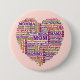 This original word art heart features a mother's job description. As well as including words like "mum, mama, mother, mum, mummy," etc, it also includes all the jobs mothers do, like "teacher, doctor, therapist, diplomat, boss, chef, judge, mentor, storyteller, coach" and even includes some funny jobs like "firefighter, spy, drill sergeant." The words are in bright colours and various fonts, all fitted together one-by-one to form a heart shape. This would make a sweet Mother's Day button.
