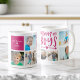 Are you a mother to a brood of boys? Celebrate your boy mum status with this cute mug featuring the saying "mum of boys" in vibrant fuchsia pink hand lettered typography with a collage of seven favourite photos of your sons. Personalise with a custom message (we love it with the kids' names and the year). Makes a perfect Mother's Day gift or stocking stuffer for a beloved mum from her sons.