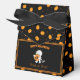 A cute and funny mummy walking bring Halloween pumpkin and scary jack-o'-lantern pumpkins seamless pattern on black with Happy Halloween script and Trick or Treat personalised Halloween party Favour Candy Box. You can easily change the text and colour or remove by clicking customisation options.