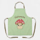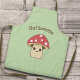 A green apron with an illustration of a cute mushroom in cartoon style and customisable brown text above! Get it for a funny gift to a cooking chef!