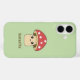 A green phone case with an illustration of a cute mushroom in cartoon style and customisable text below! It could be perfect for a kid or a friend who loves Kawaii character and nature!