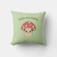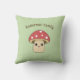 A green pillow with an illustration of a cute mushroom in cartoon style and customisable brown text above! Perfect to add a funny touch to your home or for a kids room decoration!