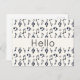 A postcard with a musical themed design. A pattern with treble clef, bass clef and other musical symbols.
