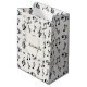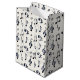 Gift bag with a musical themed design. A pattern with treble clef, bass clef and other musical symbols.