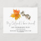 Cute My Cat I have Moved Script Autumn New Home. Trendy handwriting style set script is My Cat And I Have Moved, and cute cat clinging on to an autumn leaf illustration on a convenient postcard. Easily personalise the rest of the text at the bottom with your details.