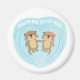 Express your love to that special someone with this cute cartoon of a pair of otters! The couple is holding paws while floating on top of the water. The water waves ripples away from them forming a heart outline in the process. The amusing romantic pun text reads "You're my otter half".