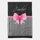 Cute Name Pink Ribbon Black White Stripes Pattern Tea Towel