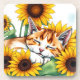 An adorable ai watercolor illustration of a little white and orange kitten taking a nap in a bunch of sunflowers. Add this sweet, cosy décor into your space to induce a relaxing environment.