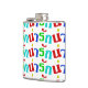 Well made flask, a little better than I had expected. Flask came in clear plastic box which gave it a nice presentation when I took it out of the zazzle packaging. Image is not printed on flask but on sticker. Don't know how this will hold up I haven't used it yet. This would make a Great gift! I plan to purchase more for friends! Cheers. I thought a little brighter than computer. Very crisp, writing wasn't