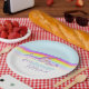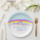 Rainbow baby shower plates, featuring a cute whimsical narwhal watercolor painting. Personalise your baby shower honouring name and date. Other matching items are available. Unique watercolor art and design by Sarah Trett for www.mylittleeden.com