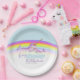 Cute narwhal mother and baby rainbow baby shower paper plate