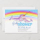 Rainbow baby shower invitations, featuring a cute whimsical narwhal watercolor painting. Personalise your baby shower invitation with your own details. Unique watercolor art and design by Sarah Trett for www.mylittleeden.com