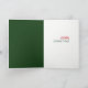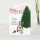 On the front of this Christmas card, an adorable little Boston Terrier dog lies in front of a Holiday tree which is ready to be decorated. At his feet are some of the tree bulbs, and above him are several strings of decorations. The green text says "My very FAVORITE part of CHRISTMAS is decorating." The inside of the card simply says "Merry Christmas". All of the text may be easily changed by you.