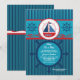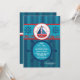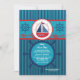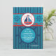 A delightful invitation to a baby shower or juvenile birthday celebration. The blue on blue pin-stripe background is overlaid with a helm border and a little sailing ship. Your wording is featured within a helm window. (Vector4free - sailboat background vector).