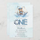 Cute Nautical Blue Boat Teddy Bear 1st Birthday Invitation