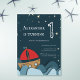 Cute Nautical Blue Sailboat Boy First Birthday Invitation