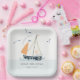 Cute Nautical Blue Sailboat Pastel Baby Shower Paper Plate