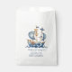 This cute baby boy baby shower favour bag features an adorable sailing ship in soft watercolor shades of nautical blue. Personalise the front with your choice of special text.