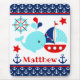 Cute Nautical Blue Whale and Anchors Pattern Mouse Pad