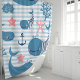 Dive into a whimsical underwater world with this adorable shower curtain featuring cute blue whales, playful starfish, vibrant coral, and charming anchors on a striped background of soft blues and whites. Perfect for adding a touch of ocean magic to your bathroom decor. Made from high-quality, water-resistant fabric, this shower curtain is both playful and practical. Ideal for children's bathrooms, beach houses, or anyone who loves ocean creatures and nautical themes.