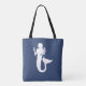 This cute, fun pattern featuring a simple shaded drawing of a mermaid adds an eclectic type character to your wardrobe! | FUN SOLID WHITE SILHOUETTE MERMAID SHAPE IMAGE ON A SOLID TROPICAL BLUE BACKGROUND | WHIMSICAL SEA LIFE | OCEAN | BEACH | FUN | SUMMER | DREAMS | HAPPY | PRETTY | CHIC DESIGN THEME | NAUTICAL | TROPICAL |