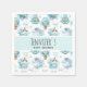 Baby shower paper napkins with a whimsical pattern featuring cute smiling whales happily swimming in the sea.