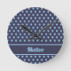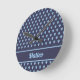 Cute navy blue angel pattern personalised name round clock