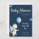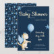 Cute Navy Blue Dragon with Balloon Baby Shower Invitation