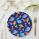Cute Navy Blue Pattern Dinosaur Birthday Paper Plate