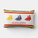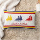 Cute Navy Blue Red Yellow Sailboat Stripe nautical Lumbar Cushion
