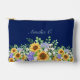 Cute Navy Blue Watercolor Wildflowers Cosmetic Bag