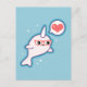 Super cute baby albino narwhal with nerd glasses and love heart.