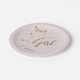 Cute Neutral Bow Ribbon It's a Girl Baby Shower Paper Plates. Design features a sweet watercolor bow ribbon, a chic delicate vintage polka dot background.