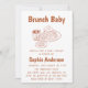 Celebrate the mama-to-be with a cozy and stylish brunch-themed baby shower invitation! This modern neutral design features warm brown typography with charming hand-drawn brunch illustrations including pancakes, coffee, and breakfast details — perfect for a relaxed and trendy “Brunch Baby” celebration.