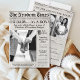 This super cute, unique & trendy The Newborn Times newspaper style double-sided baby shower invitation features 3 black and white photos, catchy editorial headlines like "Oh Baby... It's a Boy!" and "Let the Adventure Begin" and editorial column theme details and mummy- and daddy-to-be photo caption quote, is the perfect way to invite your guests to celebrate the coming arrival of your little one! (Baby GIRL version of this design is also available in the collection below ♥.) Easily personalise the wording on both front and back sides, easily upload your photos, and even edit placement of design components further, or add/delete text, by clicking the blue "Edit using design tool" button at the bottom of the "Personalise" window, making your changes, and clicking "Done" to complete and make it your own! Choose to order prints with included white envelopes, or choose the instant download and print the digital file yourself. Custom design requests and template questions are always welcome - click the "message" button or email figandlilyco@gmail.com. Photos are for placeholder purposes only, and must be replaced. ♥ Design is lovingly created by Fig and Lily Studios - sending blessings and thanks your way!