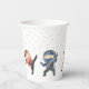A ninja paper cup designed for your child's next ninja themed birthday party. It features a pattern of cute little ninjas in a variety of positions. Make the birthday celebration a special event with this gender neutral watercolor design in pastel colours of blue, green, orange white and grey in a white background. Whatever your little ninja warrior's favourite type of martial arts may be, you can make the party memorable with this unique set of party accessories.