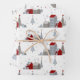 Cute Nordic Christmas Houses Hedgehog Floral Wrapping Paper features 3 different patterns houses, hedgehogs and winter floral in grey and red on a white background. Designed by Evco Studio www.zazzle.com/store/evcostudio