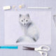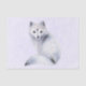 Tissue paper with a watercolor image of a white fox with fancy blue flora designs all over its fur.