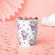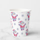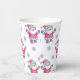 These cute paper party cups have a repeating pattern of a Nordic or Scandinavian style Santa Claus and blue snowflakes. The images are placed on a white background. Your custom text is in matching red and blue on a circle banner. Festive for the Christmas Season!