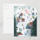Cute Nordic skating Village Christmas Holiday Postcard