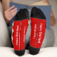 Cute Northern Cardinal socks with a pattern of adorable cardinal caricatures, solid bottoms with the text, I'mma Bird Nerd and I love Birdies, both lines can be changed to your own text - a white band on top with coordinating colours and the BirdyBirdy™ Logo on top. Without a doubt, the perfect bird lovers gift for the bird watcher who has everything.. well - Almost everything..