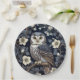 Cute Northern Saw-Whet Owl And Moonflowers On Navy Paper Plate