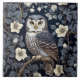 Cute Northern Saw-Whet Owl And Moonflowers On Navy Tile