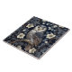 A charming Northern Saw-Whet Owl perched among delicate moonflowers on a deep navy background. This enchanting ceramic tile adds a whimsical touch of nature and magic to any home décor!