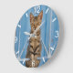 Cute Nosy Tabby Cat Kitten Sitting in a Blue Fence Large Clock