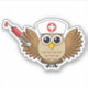 An illustration of a cute nurse owl bird with syringe cartoon. He is happy working in the hospital assisting the doctor and nursing the patient. This design is a gift idea for nurse appreciation and nurses day.