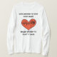 I love this shirt. I had written to the artist asking her if this picture was available on a shirt, and she wrote me back telling me where I could find the shirt. These shirts can be custom made to have a different saying. I loved this saying and went with it. The artist wrote me back later to tell me that she had seen my order go through. How's that for service? Pretty special. It's just as displayed. Perfect!