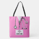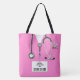 Unique medical-themed nurse purse gift bag featuring pink hospital scrubs and a stethoscope. Edit text to add name.